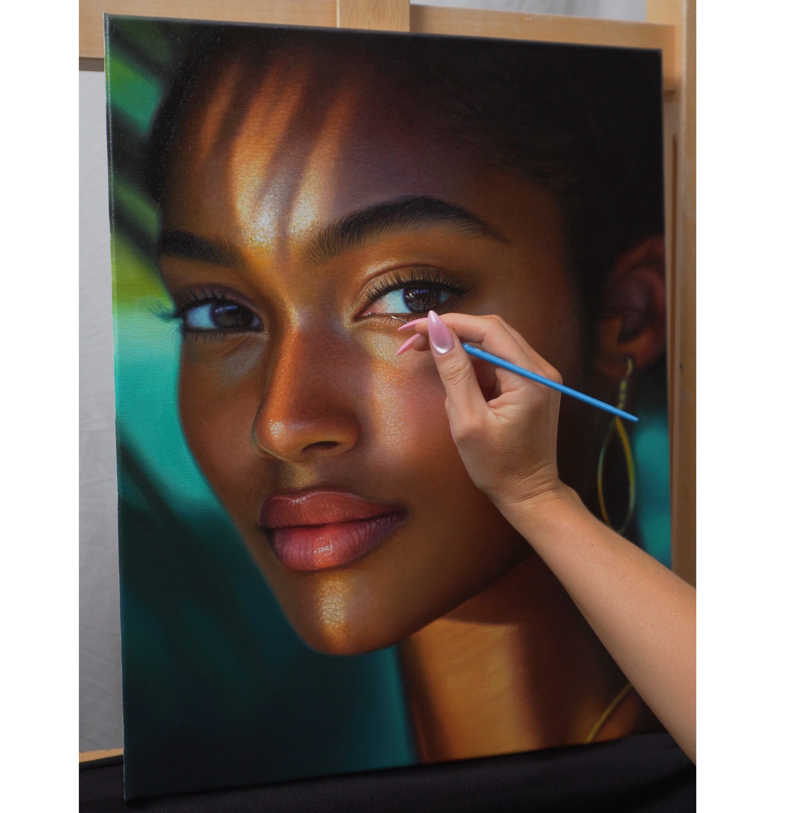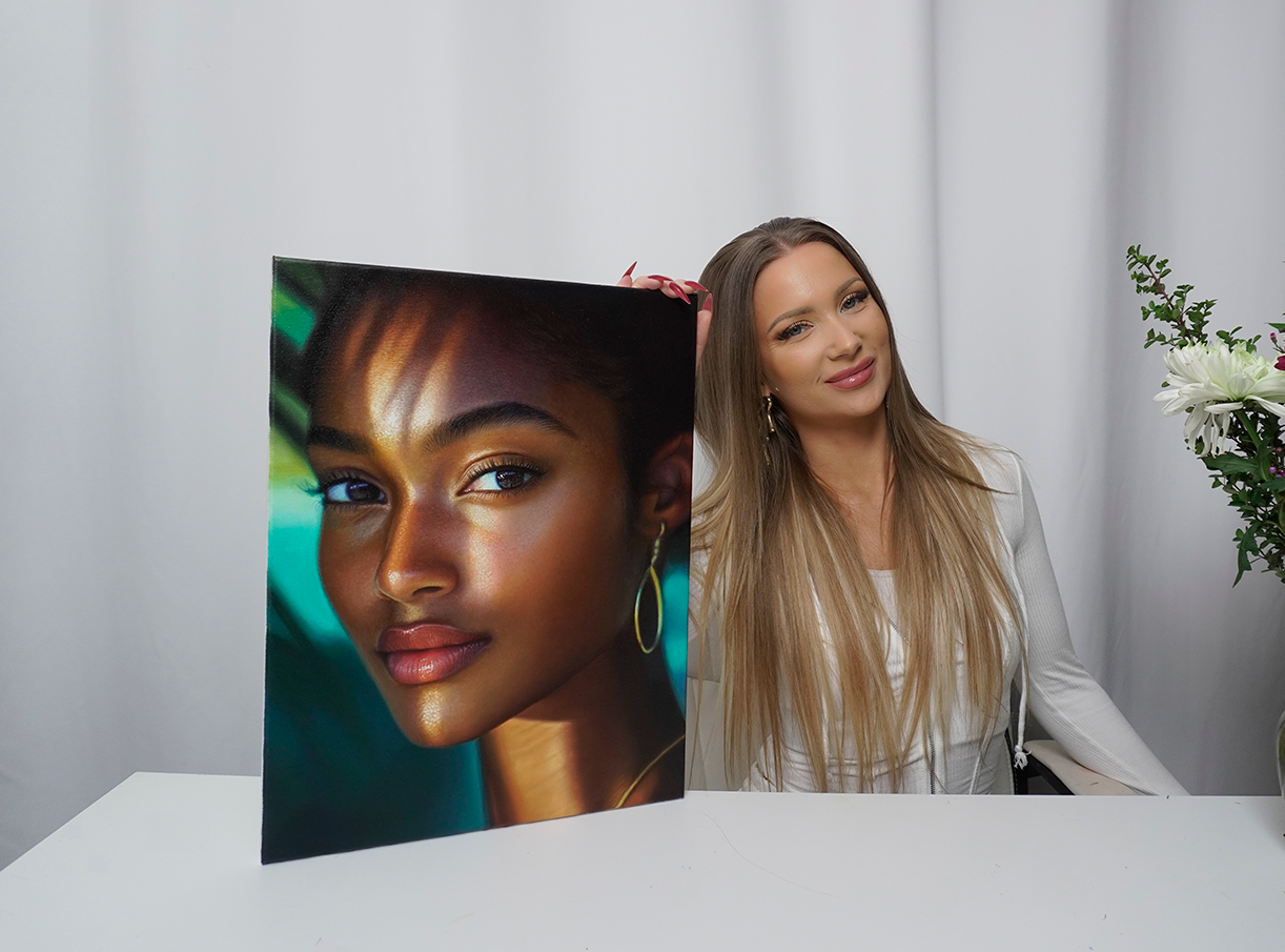 I’m a Swedish artist based in Los Angeles, specializing in realistic oil portrait painting. Although I studied art formally, most of my growth came from years of independent practice and hands-on experimentation. I’ve worked across acrylic and oil, from smaller canvases to large custom commissions, constantly refining my approach to realism. Over time, I developed a way of working that made everything click, and that’s exactly what I want to share with you. I created this course to give you the clarity I didn’t have when I first started oil painting, so you can approach complex portraits with confidence and control.